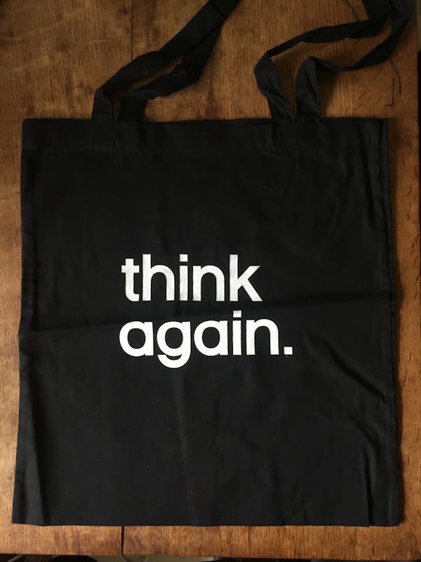 Vanaf zaterdag 16 december is de postermuur van Merel bij ZaadeL te zien en zijn de posters en de tasjes 'Think Again' te koop.