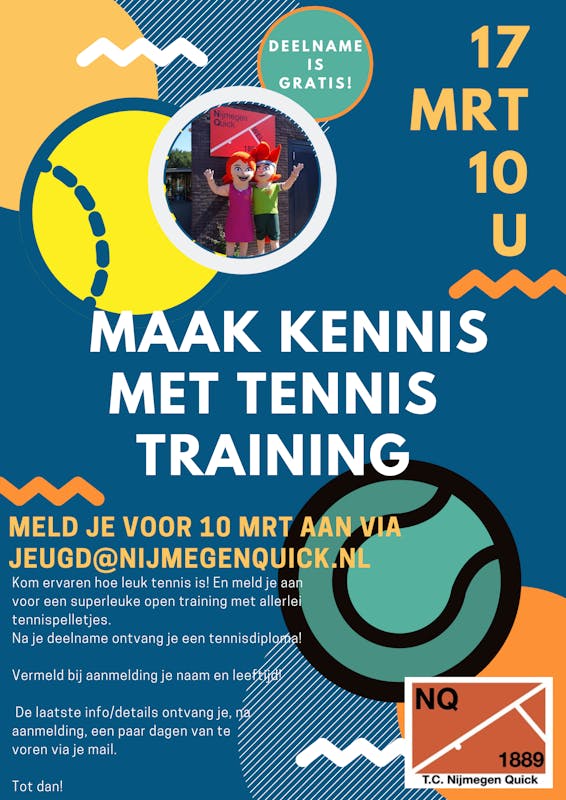 PS. Tip, als je nog op tijd bent, kan je je ook via Sjors Sportief aanmelden voor 2 proeflessen en deze maak-kennis-met-tennis-training als afsluiting. Je kan dan dus in totaal 3 keer komen proeven. Je kan je hiervoor aanmelden via: https://www.sjorssportief.nl/activiteit/353419/tennis