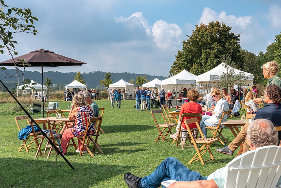 Twee dagen lang kun je op deze prachtige plek in de Ooijpolder bij Nijmegen genieten van kunst en design. Op de veranda of het terras kun je genieten van een drankje met een geweldig weids uitzicht op de stuwwal van Beek en Ubbergen.