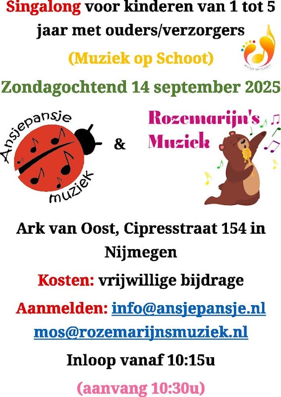 Verzorgd door Rozemarijn Willemsen (rozemarijnsmuziek.nl) en Ans Hofer (ansjepansje.nl).