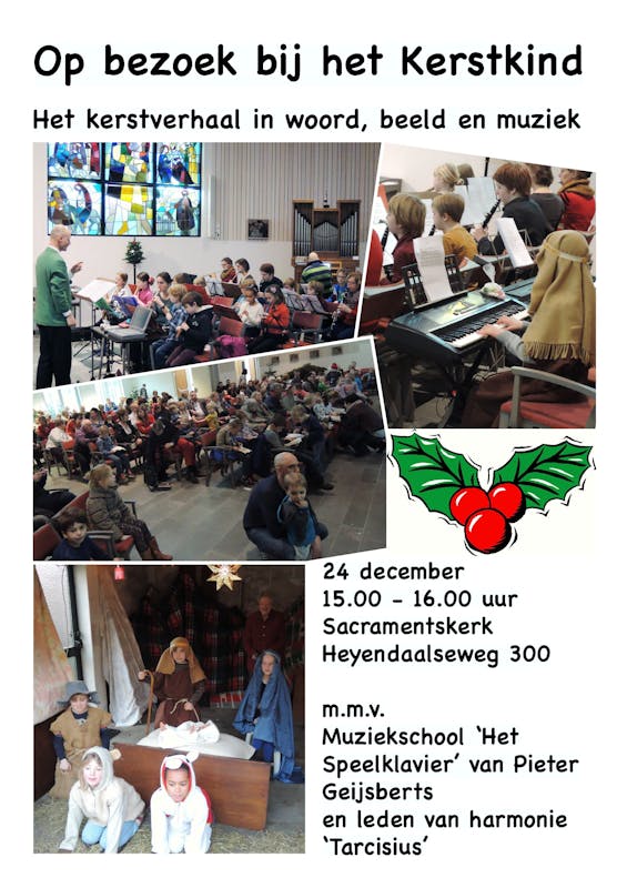 Speciaal voor de kinderen en hun familie wordt het kerstverhaal verteld met veel muziek en een mooi beeldverhaal. Iedereen is welkom op 24 december om 15.00 u – 16.00 u in de kloosterkerk van Brakkenstein, Heijendaalseweg 300. We beginnen in de kerk en daarna gaan we het Kerstkindje bezoeken. De viering is m.m.v. van o.a. leerlingen van de muziekschool van Pieter: ‘Het speelklavier’, van Monique Stienstra en muzikanten van harmonie ‘Tarcisius’. Voor groot en klein de moeite waard! Graag allemaal tot ziens.