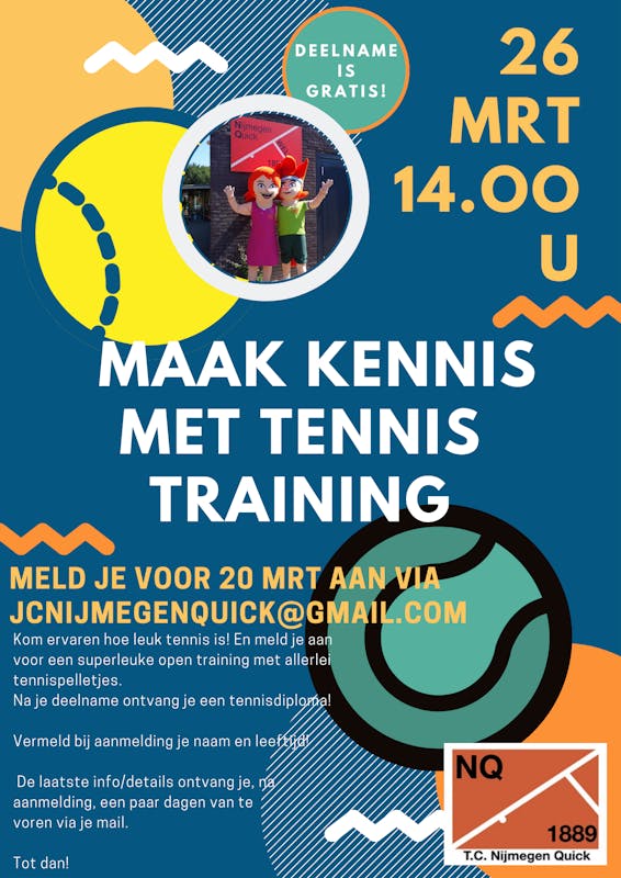 PS. Tip, als je nog op tijd bent, kan je je ook via Sjors Sportief aanmelden voor 2 proeflessen en deze maak-kennis-met-tennis-training als afsluiting. Je kan dan dus in totaal 3x komen proeven. Je kan je hiervoor aanmelden via: https://www.sjorssportief.nl/activiteit/264789/tennis