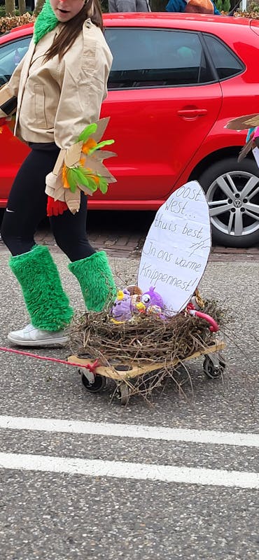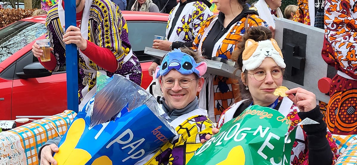 Maar liefst 15 onderdelen telde editie 2025 van de Brakkensteinse optocht! De residentie van Prins Vincent I ligt aan de Houtlaan en zodoende was de start dit keer vanaf het bestuursgebouw van de RU. Een sjieke plek om de wagens op te stellen. Na het plaatsen van de prinselijke stoeptegel ging de stoet van start. Met feestmuziek van de Fietsband. En er viel vanalles te eten onderweg: van speciale frikandellen, Franse stokbroden tot paprikachips ! Je kon er een culinaire ervaring van maken.