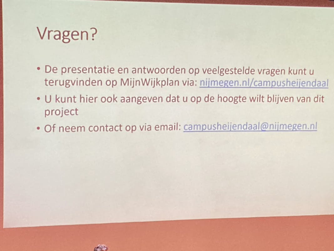 Na al dit moois namen we plaats in lokalen. Ik dacht eerst ik kan wel naar huis, zulke prachtige plannen. We kregen plakplaatjes en de gelenheide onze lof en kritische opmerkingen te plaatsen, die waren er toch wel, bijvoorbeeld wie moet dat betalen, hoe gaat het aan de buitenkanten van de campus, fietspad langs de Houtlaan bijvoorbeeld en hoe zit het met de beloofde rotonden hoek Heyendaalseweg, Houtlaan en Kwekerijweg. Hoe gaat het op de D'Almarasweg met de veiligheid.