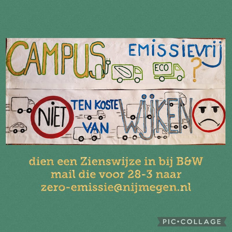 Dat de campus een emissievrije zone wordt staat al vast sinds 2020 en daartegen is het indienen van een Zienswijze dan ook zeker niet gericht. Het kan nu bij het indienen van een Zienswijze op het Verkeersbesluit enkel nog gaan om invloed op de grenzen van de emissievrije campus en het vragen om maatregelen die de lasten van de extra verkeersdruk tegengaan. Dat zal zeker extra budget vragen; maar de straten kunnen er echt niet meer verkeersdruk bij hebben. Het zijn immers straten waar gewoond, geleefd wordt !