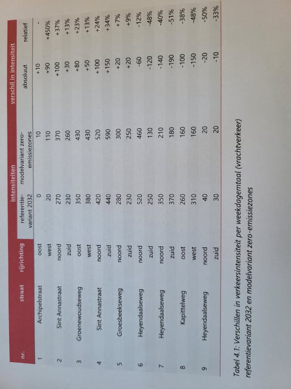 Op het kaartje uit het Rapport Effectenstudies zero-emissiezones Nijmegen is te zien dat de genoemde drie straten in Brakkenstein niet zijn doorgerekend op toe – of afname van verkeersintensiteit. Een straat als 1: Archipelstraat bijvoorbeeld kent een toename van 450 % !