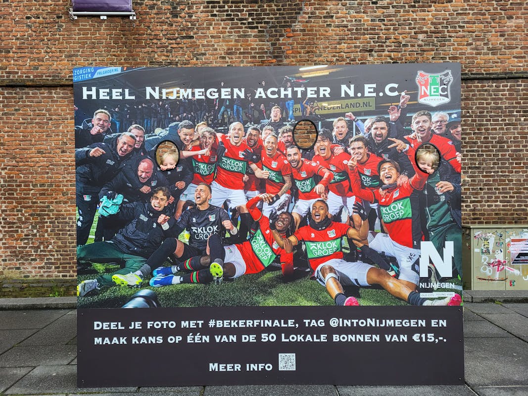 Nog 1 nachtje slapen dan is de KNVB bekerfinale NEC- Feijenoord in de Kuip ! Er is veel animo voor een NEC fotoshoot op het Marienburgplein.