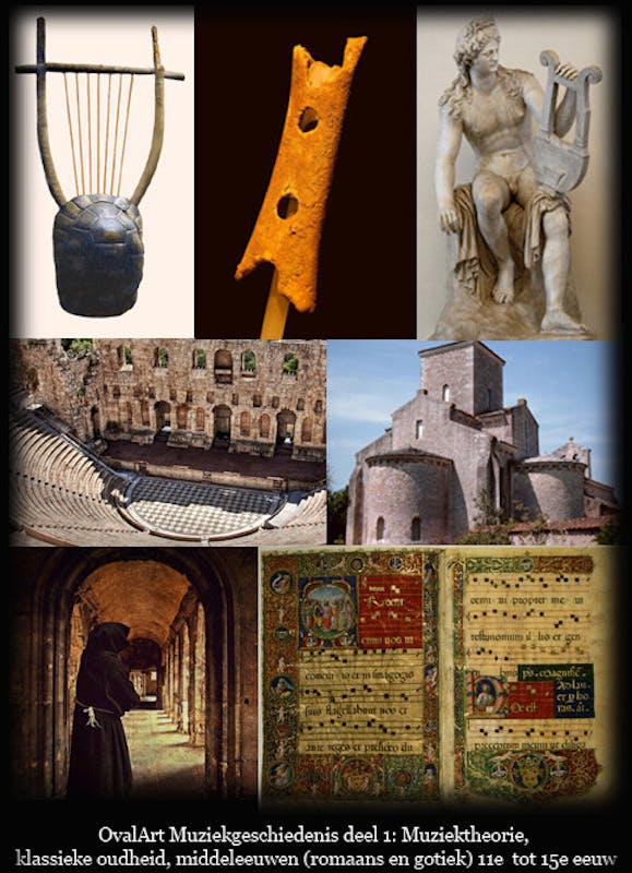 Kunstperioden 11e tot 15e eeuw: muziektheorie, klassieke oudheid, middeleeuwen (romaans en gotiek)