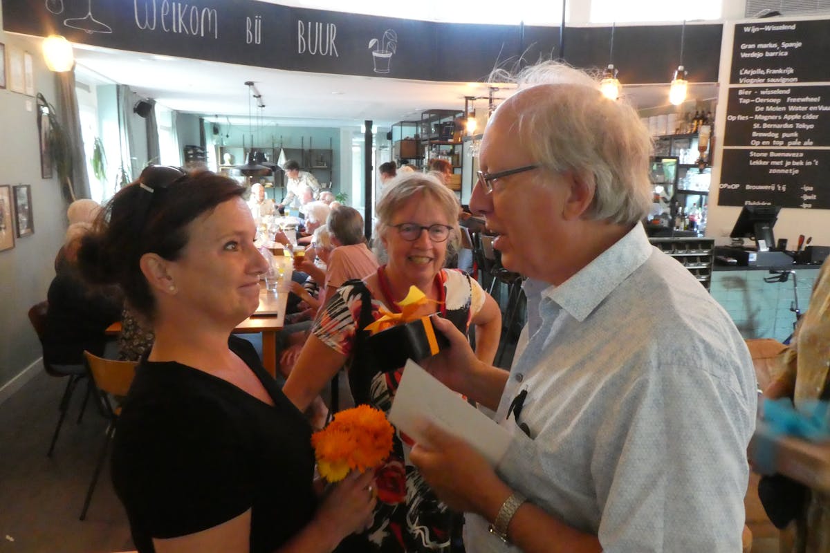 Sylvia's afscheidsborrel in BUUR werd druk bezocht. Sylvia Thijssen heeft als projectleider voor BUUR en voor de wijk tientallen activiteiten opgezet en georganiseerd. Er waren mooie toespraak van Melanie Reekers en van Jo van Son. Iedereen was erg tevreden en liet dat volop merken door geschenken en dankbetuigingen. Annelies maakte een mooie fotoreportage. We zullen haar missen. Op de laatste foto lijkt het of ze ons aanspoort om aan de gang te blijven.