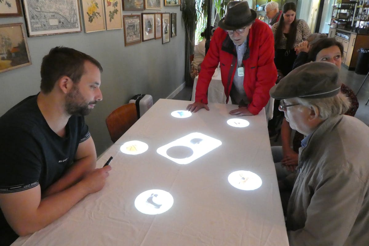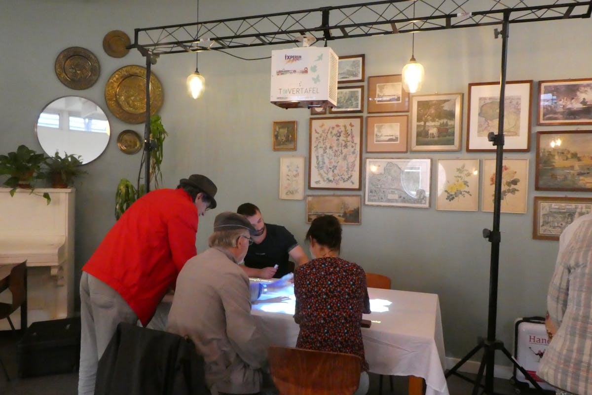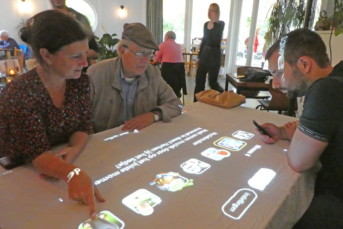 In BUUR hadden de studenten een "tovertafel opgesteld", een tafel met een wit tafellaken, met daarboven een projectieapparaat. Op de tafel projecteerden ze spellen zien bijvoorbeeld tafelvoetbal, quizjes. Ik vond het heel leuk, je kon de bal spelen door met je hand op de bal te tikken. Je kunt het met meer mensen spelen en ik werd er heel enthousiast van. Helaas verloor ik met 5-4 van Huub, die zijn succes verklaarde: ik heb Van Gaal als trainer.