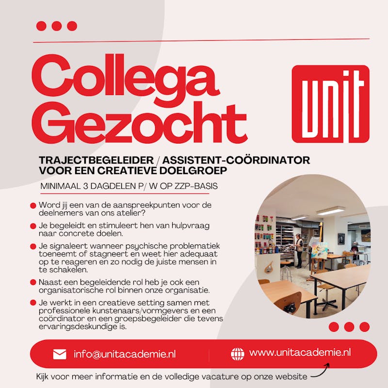 Voor vragen over de vacature kan je mailen naar Contactpersoon: Gemma van Grinsven, meer informatie: www.unitacademie.nl