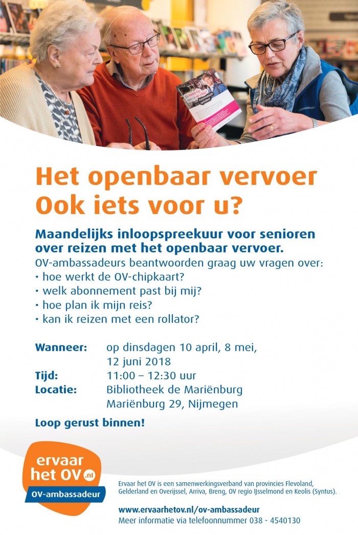 Op 12 juni aanstaande van 11.00 tot 12.30 is het laatste inloopspreekuur voor senioren.