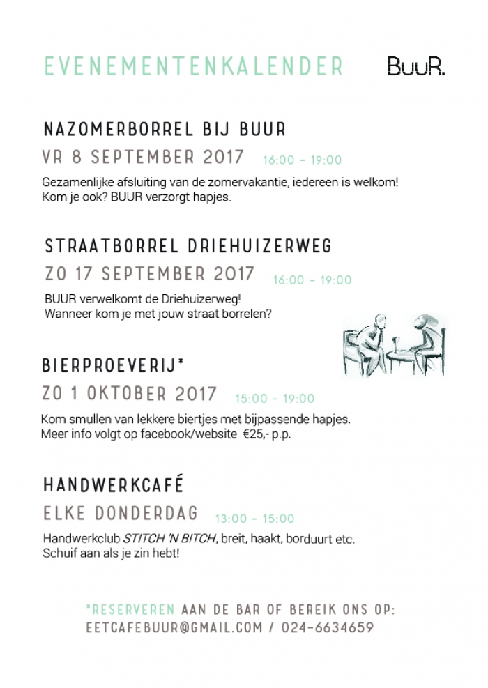 Er is weer genoeg te doen bij BUUR de komende tijd. Welke buur neem jij mee naar een van onze evenementen?