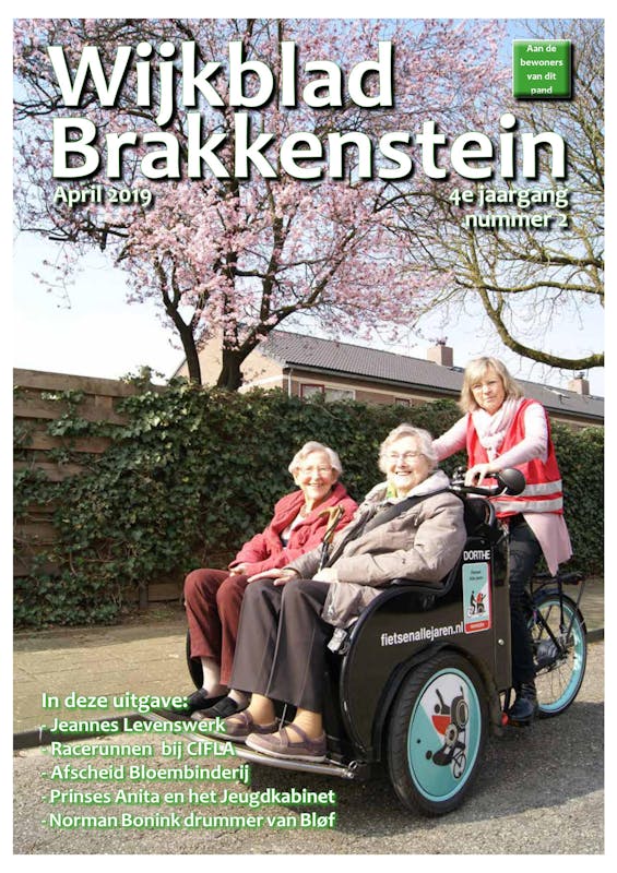 In deze uitgave: Jeannes levenswerk, Racerunnen bij CIFLA, Afscheid Bloembinderij, Over prinses Anita en het Jeugdkabinet, Norman Bonink en nog veel meer. Op de voorpagina de fietsriksja, die ook in onze wijk gaat rijden. En over een bijzondere expositie vanaf zaterdag 18 mei in het Kunstmagazijn.