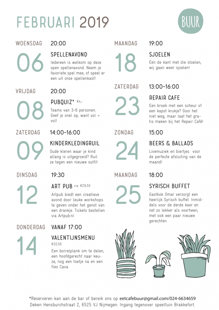 De nieuwe Buurtkalender voor december, met weer allemaal leuke (kerstige) activiteiten in Brakkenstein.