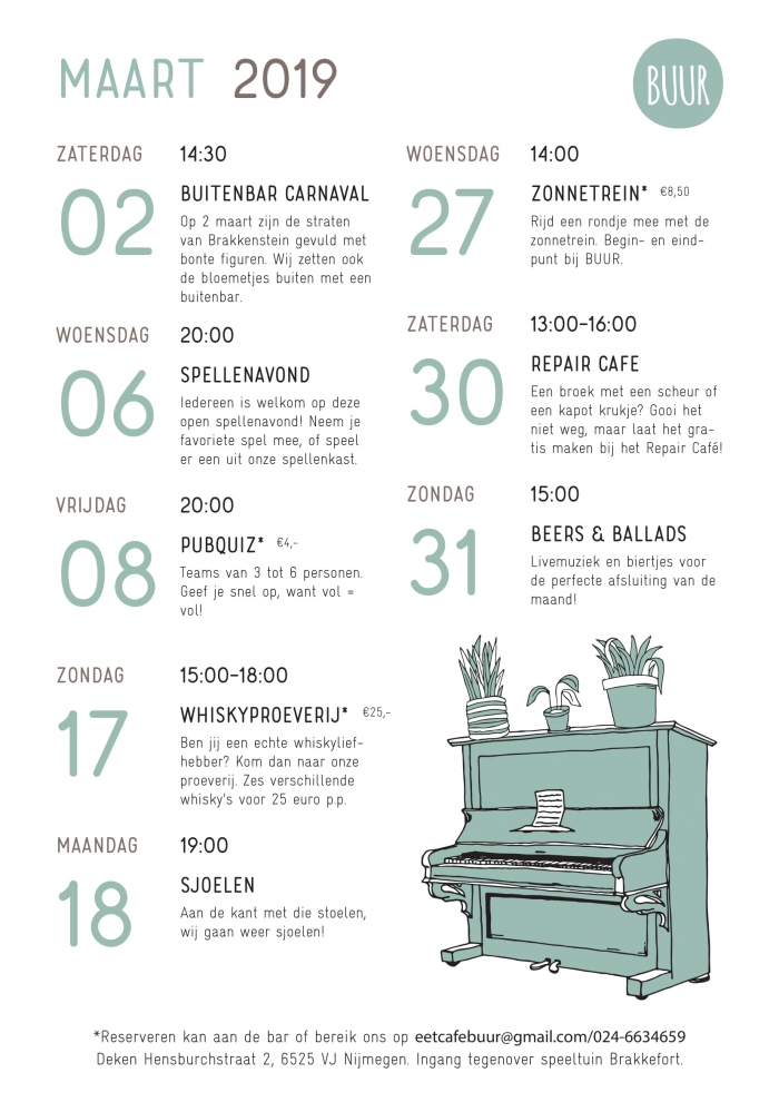 Ook in de maand maart is er weer genoeg te doen bij BUUR!