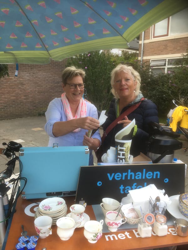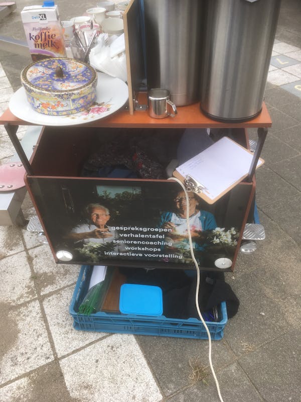 Om kwart voor vijf pakken de dames in en gaan nog drie donderdagenmet de kar naar een van de pleintjes in Brakkenstein. We nemen dan wel een roeptoeter mee, zegt Tineke. Dan komt ook Alice Pleiter van Contact in Zicht nog even kijken.