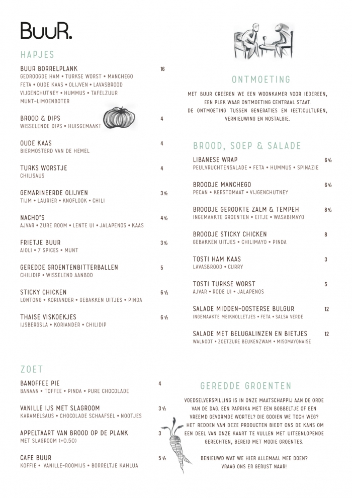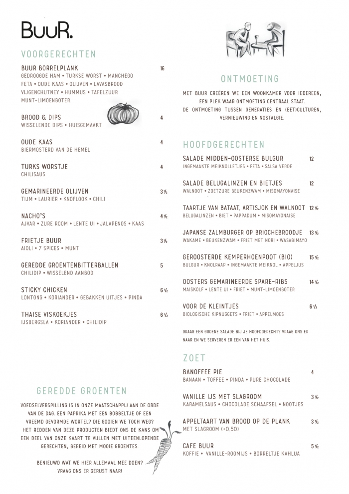 De winter begint langzaamaan plaats te maken voor de lente en ook bij BUUR is het weer tijd voor iets nieuws. We hebben weer een nieuwe menukaart! Kom je snel langs om te proeven?