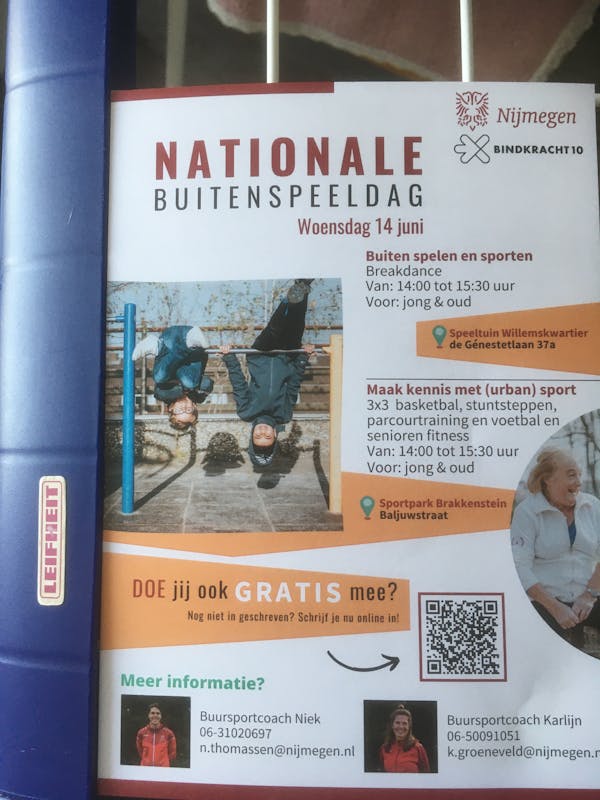 Gratis meedoen: opgeven kan via de QR code van de poster of mail naar Buurtsportcoach