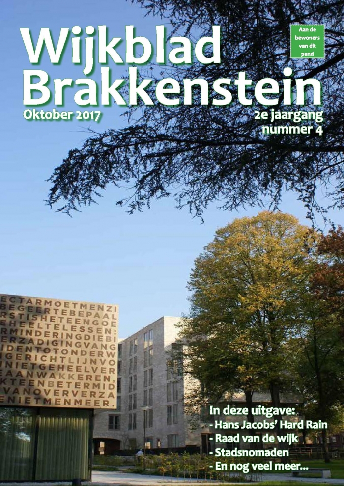Jawel, daar is 'ie weer: het oktobernummer van Wijkblad Brakkenstein! Met maar liefst 52 pagina's vol interessante artikelen, interviews met buurtbewoners en wetenswaardigheden over deze 'onze' mooie wijk!