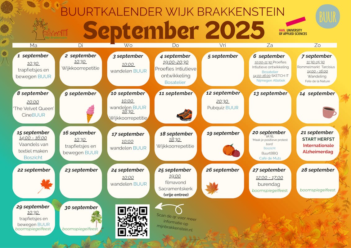 De BUURtkalender van september met alle activiteiten van de komende maand in Brakkenstein!
